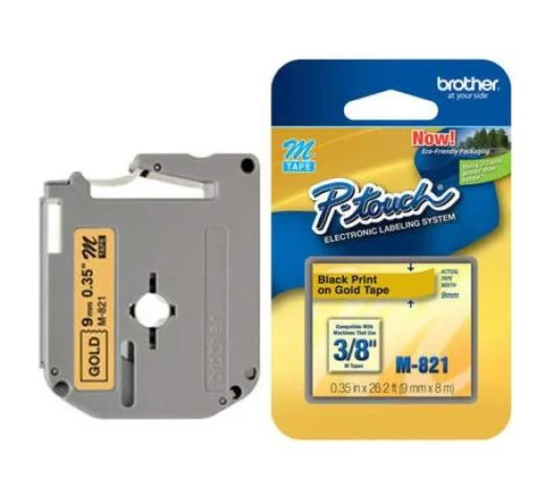 The Brother M-821 P-Touch 9mm Black on Gold Tape is a non-laminated label tape designed for elegant and professional indoor labeling. With black text on a gold background, this 9mm tape adds a premium look to labels used in offices, retail spaces, and home organization. It’s compatible with Brother P-Touch label printers that support M-series tapes and is easy to apply on smooth, flat surfaces.
