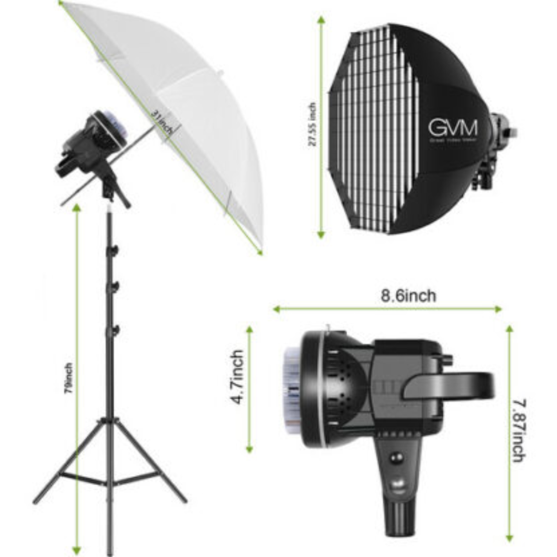 GVM P80S LED 4-Light Kit with Umbrellas, Softboxes, and Backdrops