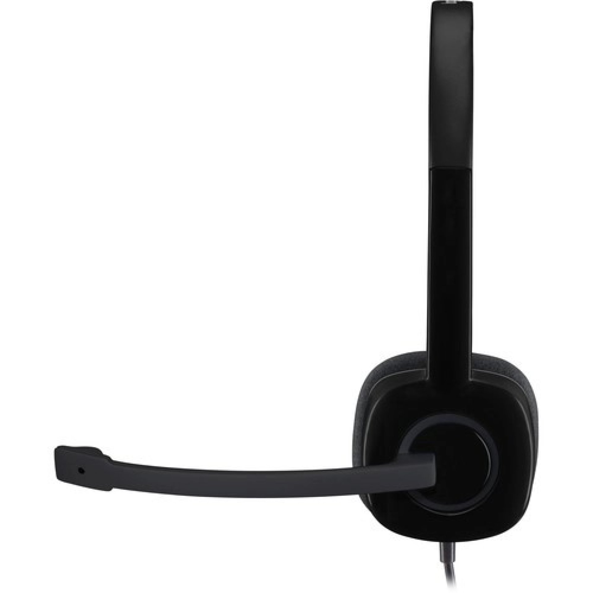 The Logitech H151 headset features a lightweight and durable design, making it comfortable for extended use. The adjustable headband ensures a secure fit, while the rotating boom microphone can be positioned for optimal voice capture. Its simple black finish gives it a professional look, suitable for office and home environments.