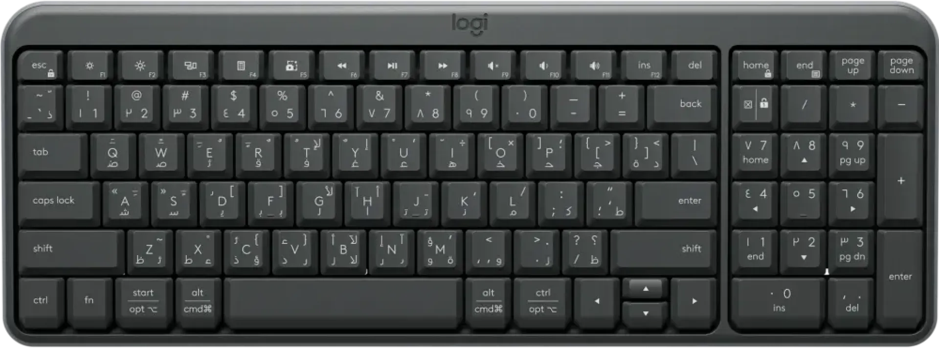 | Layout | Compact with Integrated Numeric Keypad |