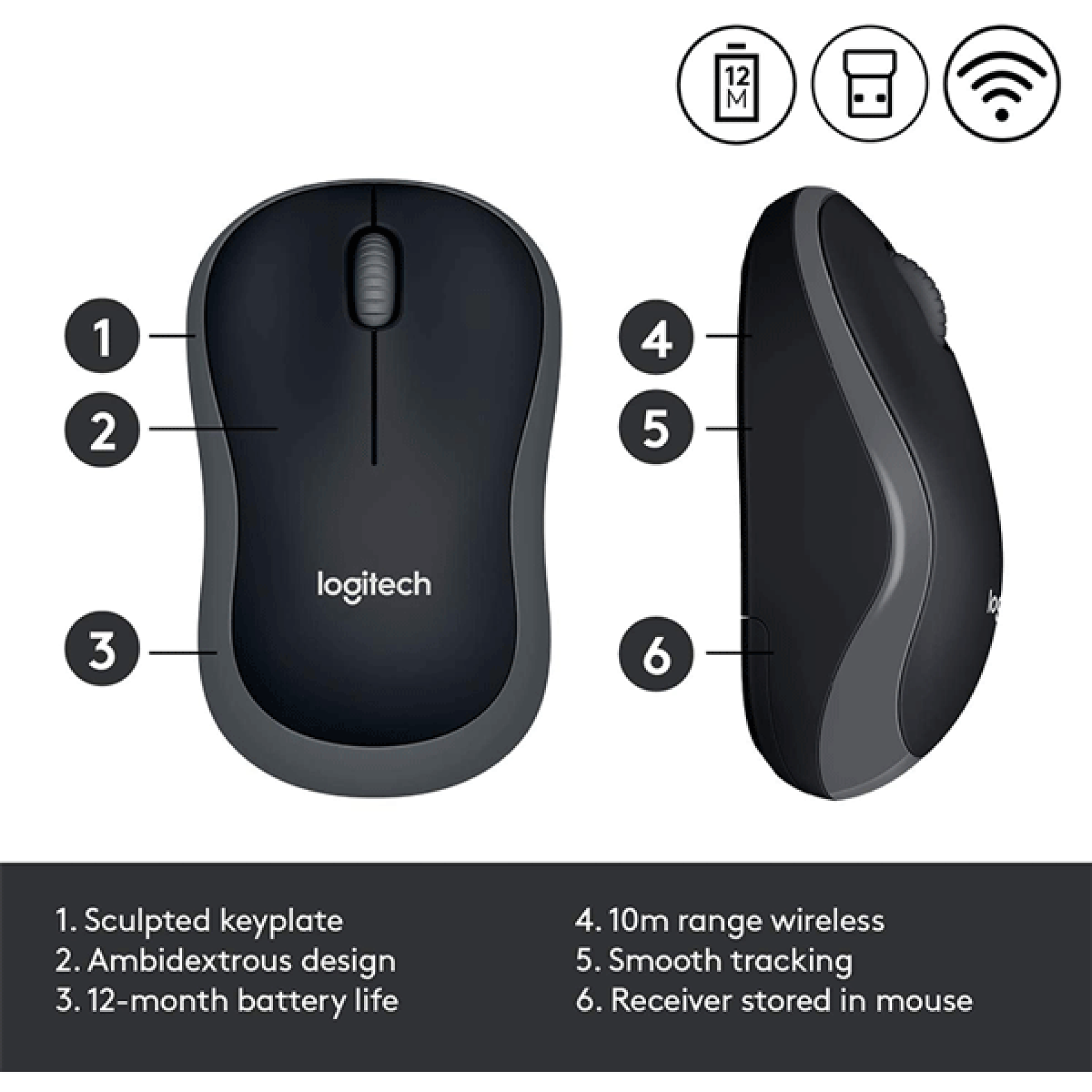 Logitech M185 Wireless Mouse – Swift Grey (910-002235) Key Features