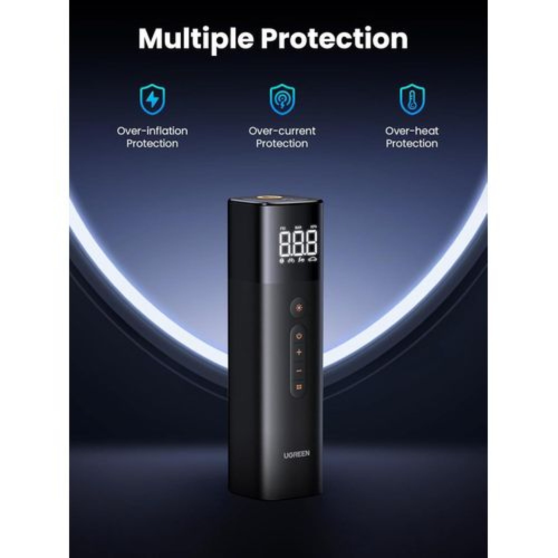 • UGREEN ET501 Car Pump 150 PSI / 12 V 30 L/Min digital display for accurate monitoring.