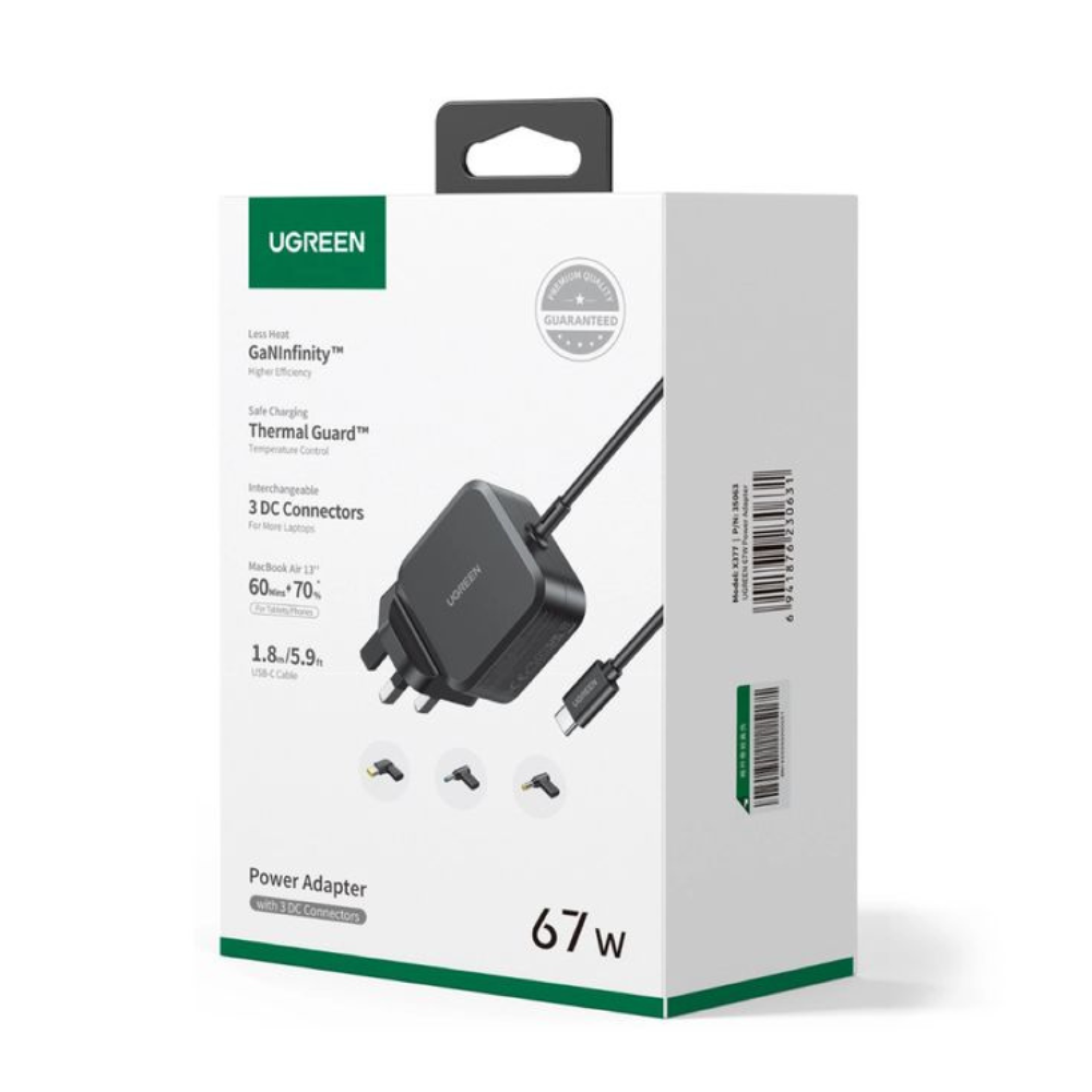 UGREEN USB-C 67W PD GaN Power Adapter UK + 3 DC Connectors (X377-UG-35063) | 3500 - 5500 |