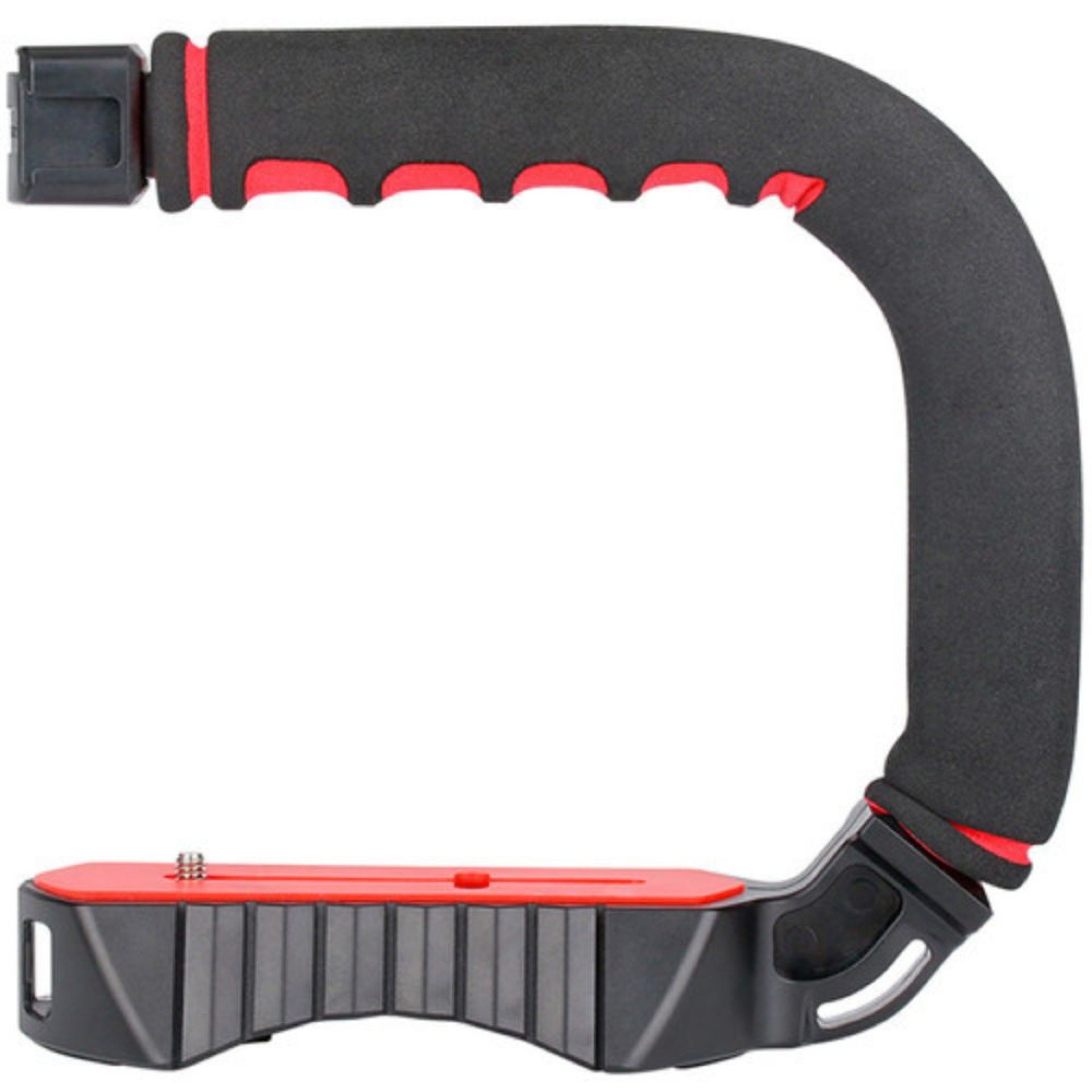 The U-Grip Pro is built with durable ABS plastic, ensuring strength while remaining lightweight. Its ergonomic design provides comfortable handling during long shoots, while the multiple cold shoe mounts allow creators to attach microphones, lights, or monitors for a complete rig setup.